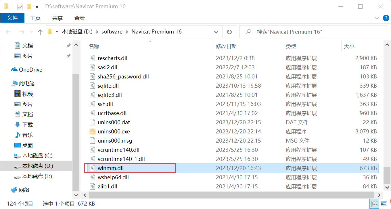 第三步:将 winmm.dll 放到 Navicat Premium 安装目录