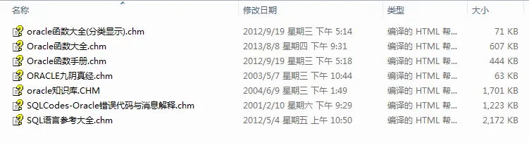 Oracle中文手册,由大神们整理,其中包括Ora9iSQL参考手册.chm、Oracle函数大全.chm、Oracle函数手册.chm、oracle知识库.CHM等手册,都是chm格式的,为大家提供下载!