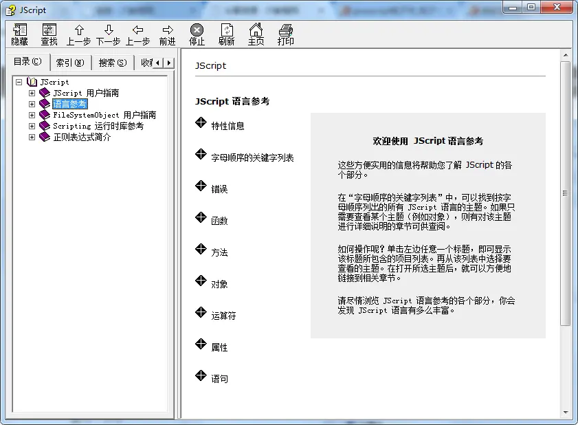 很多用户都是找javascript中文手册的,因为很少有javascript的中文手册,一般都是微软官方出的这个chm文档,不过迷途知返网站提供了Javascript语言中文参考手册下载特打包提供给大家了。